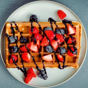 Magusad vahvlid: marjade, vahukommide, šokolaadi-/karamellikastme või jäätisega
