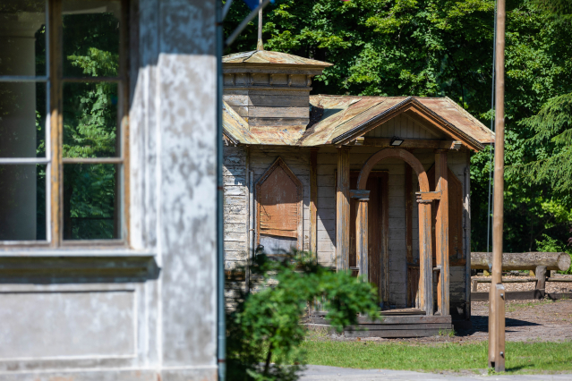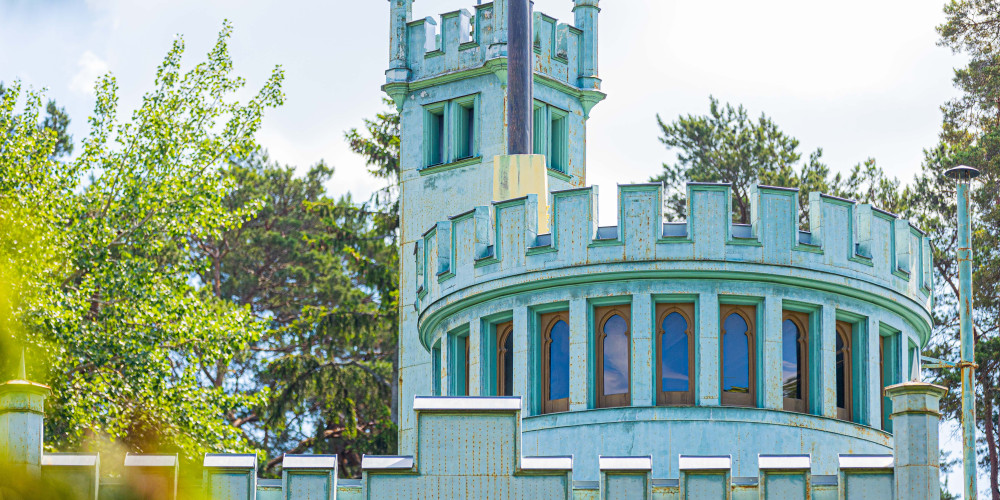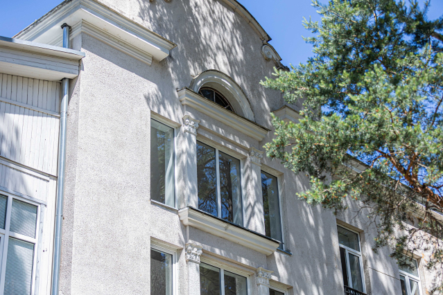 A vivid example of national romanticism. A compact wooden building with a mansard roof, it was historically called "Villa Pehkschen" in honor of its architect - Konstantin Pehkschen. Stylized motifs of ethnographic ornaments can be seen in the system of decorative elements (roof eaves, double cross motif in the design of the columns). The building was renovated in 2013-2014.