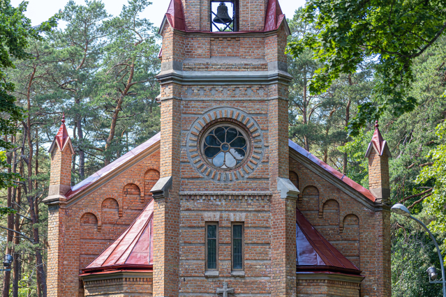 As the number of residents and resort guests in Bulduri grew, the need for a church in the premices arose. The church was built and consecrated in 1889, based on the project of the architect Herman Hilbig. The red-brick church was once known as the Waldkapelle or Forest Chapel. Services were held here in German, Latvian and Estonian languages. In 1930 the congregation began the necessary repairs to the church: repaired the roof, installed electricity and installed heating so that services could be held in winter as well. After the Second World War, the film document department of the Central State Film and Photographic Document Archive was located in the building, completely destroying the interior. At the end of the 90s, the church was returned to the congregation, and now services are held here again.