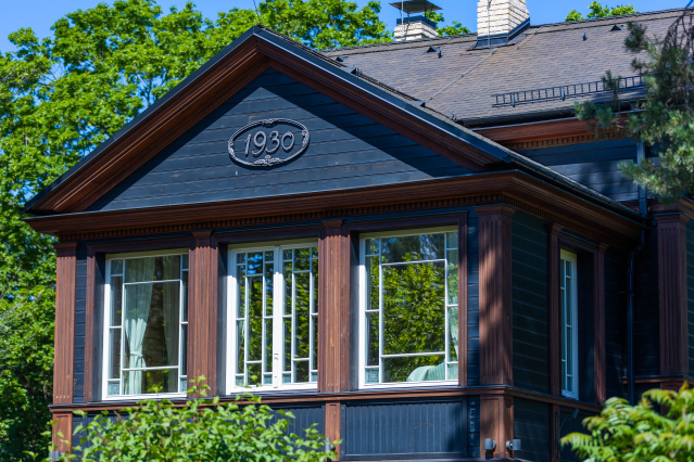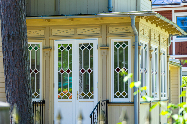 The building was built in 1920 as a summer house. An architectural monument of national importance. It features interesting glazed verandas on both sides of the two-story house and ornate wood carvings on the roof overhang.