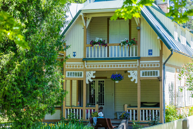 The building is an architectural monument of national importance and charms with its details and naturalness made by craftsmen more than a hundred years ago. The building is currently managed by its historical heirs. The owner's great-grandfather, a master potter, bought the plot of land - now Piestātnes iela 19 and 19A - from the Bulduri estate. The stories say that for a thousand gold tsar's rubles... The owner's family lived on the adjacent plot of land at Piestātnes iela 19A, but this house was built as a summer house for rent. When the family got the property back in 1994, the slate roof that had been installed during the Soviet era was leaking, the windows were broken, the tiles were broken. In Soviet times, the tenement house had turned into a military commissariat summer house. Slowly, restoration works have started in the family property. First the roof is put on, then the facade is painted. In 2023, the owners of the building received the Jūrmala historical architecture award for one of the most qualitative renovations of a historical building.