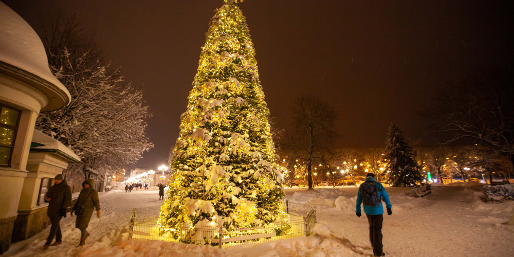 This year the city's main Christmas tree (approximately twelve metres high) is located opposite Majori parking lot, at the beginning of the pedestrian street — Jomas Street — popular among inhabitants and guests of Jūrmala.