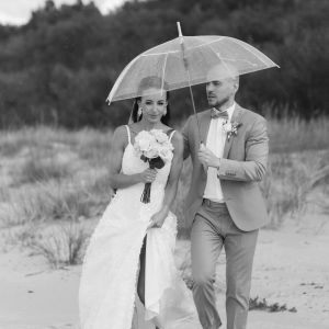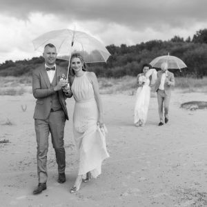 Nav jāraizējas, ja kāzu dienā debesis ir apmākušās — mākoņainas debesis bieži nodrošina maigu, vienmērīgu apgaismojumu, kas attēliem piešķir īpašu noskaņu. Pat lietus var kļūt par burvīgu papildinājumu, ja tiek izmantoti caurspīdīgi lietussargi, kas ļauj dienas gaismai brīvi izgaismot seju un rada romantisku lietus lāšu efektu.