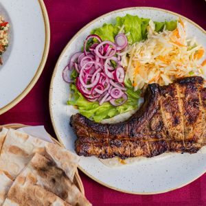 Čalahadžs jeb cūkgaļas šašliks ar kaulu - restorāns "Zangezur"