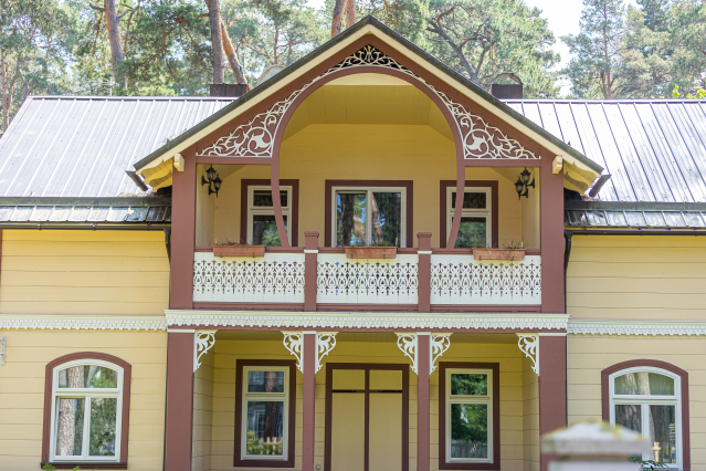 Spilgts nacionālā romantisma paraugs. Apjomos kompakta koka ēka ar mansarda jumtu, vēsturiski tika saukta par “Villa Pehkschen”, par godu tās arhitektam – Konstantīnam Pēkšēnam. Dekoratīvo elementu sistēmā var saskatīt stilizētus etnogrāfisko ornamentu motīvus (jumta āži, dubultkrusta motīvs ailu noformējumā). 2013. – 2014.gados veikta ēkas renovācija.