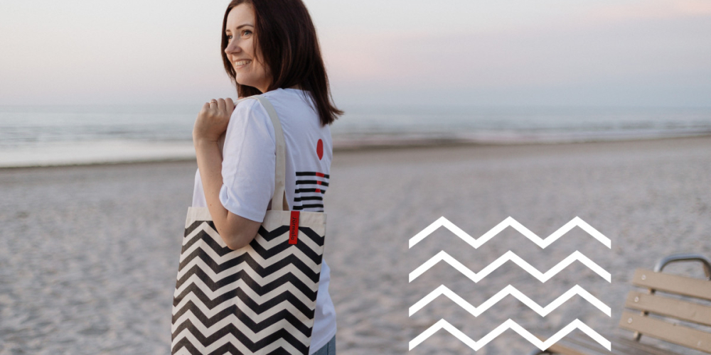 Kunstniku Alise Landsberga disain. Päikeseloojangu kujundusega T-särgid on saadaval erinevates suurustes ja kolmes värvitoonis: roosa, must ja valge. Lainete disainiga kangast kott (2 tüüpi) on paksust ja vastupidavast kangast kaunis igapäevane aksessuaar, mis sobib igapäevaostude tegemiseks.