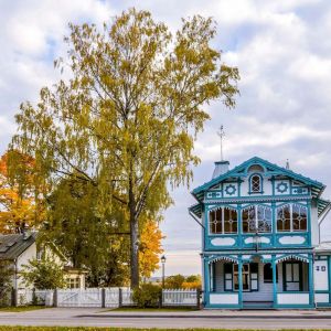 Guest house “Rakstnieku nams”. This guest house in Dubulti is the oldest writers' residence in entire Latvia. It is located on the site of the former wooden building of the Dubulti House of Creativity, where writers from all of the USSR used to write and have a rest, next to the path, where the famous Latvian poetess Aspazija used to go on her daily strolls along the sea.