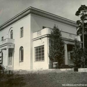 This Functionalism-style building was constructed in 1936. It was the home of the Ozoliņi family of doctors, constructed for the doctor and dermatologist Alfrēds Ozoliņš. It is currently the family home for one of his four sons, politician, and doctor Leopolds Ozoliņš. Leopolds Ozoliņš (1937 – 2021) was a recurrent member of Latvia's Parliament and the Jūrmala City Council as well as a doctor. For most of his life, he worked in the Latvian Research and Development Institute of Traumatology and Orthopaedics, where he carried out complicated and innovative surgeries and served as an aviation burn surgeon. He also invented several remedies: “Comsi”, “Avepin” and “Amicos”.