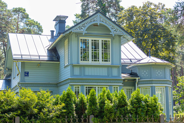 A classic Jūrmala summer house with a polygonal tower construction and luxurious wood carvings. The asymmetric composition of the wooden building shows the influence of Art Nouveau and the fact that the summer house in its current form has been standing on this plot of land in what was then Edinburgh since the 20th century. at first. In the interwar period, in the 1930s, when this district was called Avoti, visitors were received here by a doctor specializing in nervous diseases and speech defects.