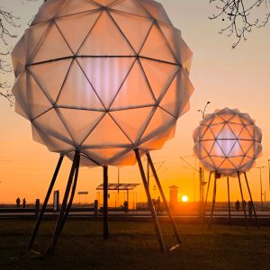 By contrast, Dzintari Forest Park offers a different interpretation of festive light — subdued, nuanced, and closely connected to nature. Metallic star-shaped installations placed among pathways and trees blend organically into the park’s structure, forming a visually rich yet unobtrusive lightscape. Here, urban brightness gradually transitions into a peaceful walk through a pine forest, preserving the festive mood well into early January.