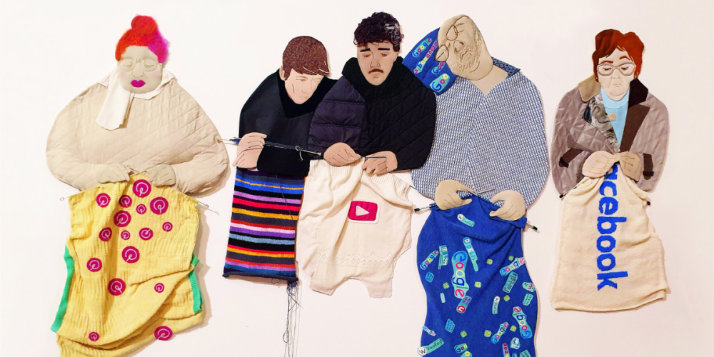 Evija Stukle-Zuitiņa. Lėtas traukinys, 2024 (tekstilės mozaika, siuvinėjimas, mezgimas)