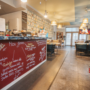 Kafejnīca veidota kā mājīga un mierpilna vide, kur valda siltums un harmonija. Katrā interjera un apkalpošanas ...