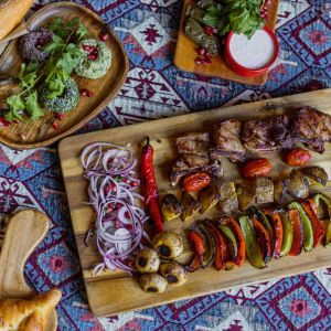 Klasiskais teļa gaļas šašliks gruzīnu gaumē - restorāns "Kinza House"