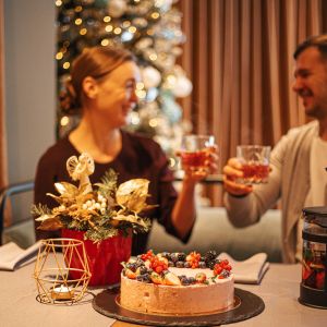 Krēmam samaisa kafiju ar upeņu sīrupu, pievieno pārējās sastāvdaļas, sakuļ līdz viendabīgai masai. Ar siera krēmu pārlej kūkas pamatni, kamēr tā karsta, un liek atpakaļ krāsnī uz 35–40 minūtēm. Tad kūku ievieto ledusskapī vismaz uz trim stundām. Musam uzbriedina želatīnu, saputo olu dzeltenumus ar cukuru. Katliņā liek ap ¼ krēmsiera un ¼ saldā krējuma. Maisot karsē, līdz siers izšķīdis, pievieno želatīnu, samaisa. Pievieno saputotus olu dzeltenumus, atlikušo krēmsieru un puto līdz viendabīgai masai. Iemaisa upeņu biezeni un balzamu. Atsevišķi saputo saldo krējumu un iecilā siera masā. Atdzisušo siera kūku ievieto 24 cm formas centrā. Pāri lej gatavo upeņu musu, izlīdzina, uz 2–4 stundām liek saldētavā, pēc tam ļauj lēni atkust ledusskapī. Dekorē ar svaigām ogām.
