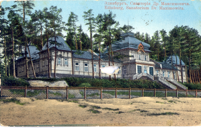 Līdz Pirmajam pasaules karam šeit darbojās Helenes Kevičas pansija, bet 1930. gadā tika atvērta sanatorija „Edinburg”, par kuru tā laika brošūrā teikts: „Sanatorija moderni iekārtota ar visām labierīcībām, atrodas mežā skaistā vietā, tuvu pie jūras. Saulainas atpūtas telpas. Piemērota atpūtai un veselības uzlabošanai slimības pārcietušiem, kā arī dažādu iekšējo un nervu slimību ārstēšanai. Medicīnas vannas un diētiska uzraudzība, vingrošana, masāža, elektriskā masāža, diatermija, kalnu saule, sollux saule, skaistuma kopšana. Pirmklasīga virtuve un apkalpošana.” Padomju laikā ēkai tika piešķirts kultūrvēsturiska pieminekļa statuss, jo 1905. gadā februārī un martā šeit bija uzturējies padomju literatūras pamatlicējs Maksims Gorkijs. Vēlāk bija viens no M. Gorkija vārdā nosauktās sanatorijas korpusiem. Kopumā sanatorijā, kuras profils bija sirds un asinsvadu sistēmas slimību ārstēšana, bija 425 vietas, izvietotas vairākos korpusos. 2006. gadā uzbūvēta vēsturiskās celtnes kopija; tagad ēka ir vasarnīcu kompleksa sastāvdaļa.
