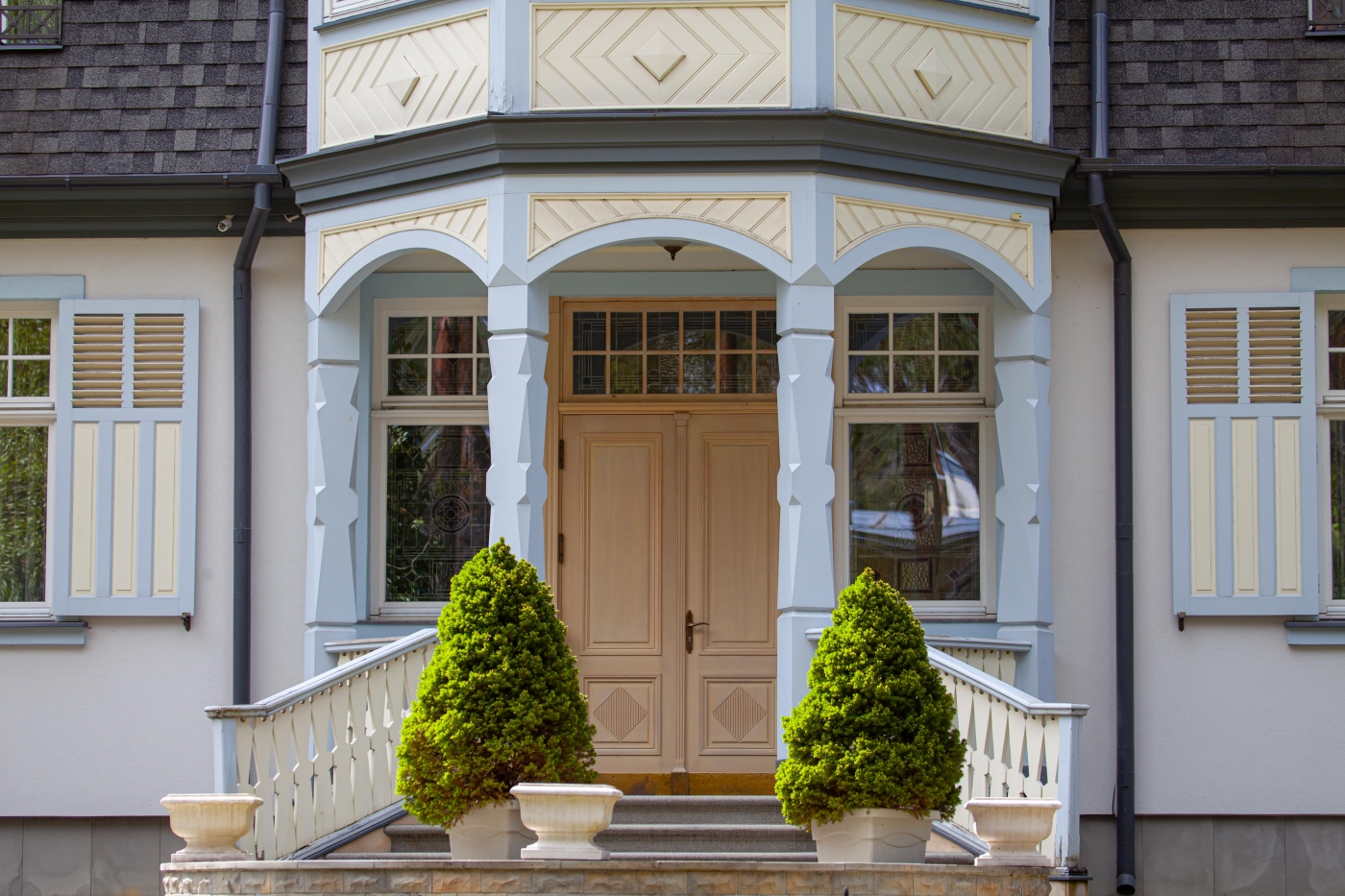 Vietējās nozīmes arhitektūras piemineklis. Ēka celta 1909. gadā nacionālā romantisma stilā pēc arhitekta Heinca Pīranga projekta ārstam, kas tolaik strādāja Bilderlingshofas bērnu kolonijā, kas atradās Lielupē, Rotas ielā 25. 2024.gadā pabeigta rūpīga ēkas rekonstrukcija (autors – Uģis Zābers), kura tika atzinīgi novērtēta ar Jūrmalas arhitektūras balvu.