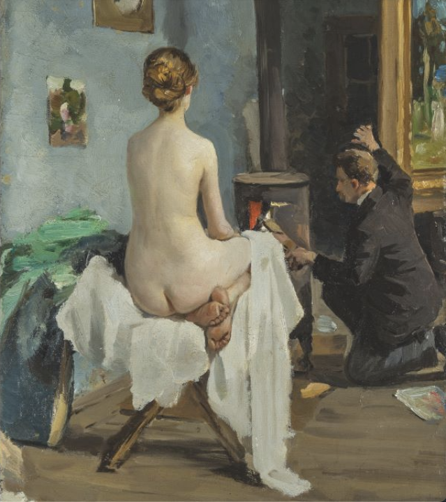 Jānis Rozentāls. Mākslinieka darbnīca. 1896. Audekls, eļļa, 85,5 × 105,6 cm. Kopija. Foto: Normunds Brasliņš. LNMM. Fragments.