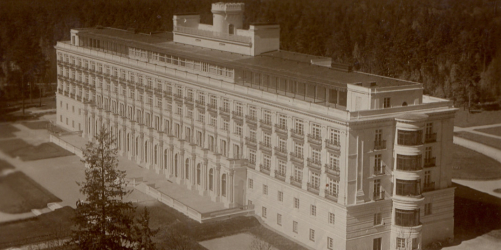 1936. gadā atklātā Ķemeru viesnīca – tautā dēvēta par “Balto pili” – bija modernākā šāda tipa ēka Baltijā un īsts kūrorta ambīciju manifests. Arhitekta Eižena Laubes projektētajā ēkā bija 107 numuri, restorāni, jumta kafejnīca ar deju zāli un pat skatu tornis, virs kura plīvoja Latvijas karogs. Apakšējos stāvos atradās ārstniecības telpas dūņu procedūrām un sērūdens vannām. Savukārt viesnīcas priekšā tika izveidots viens no retajiem ornamentālajiem parteriem Latvijā – dārzs, kas vislabāk “nolasās” skatā no augšas.